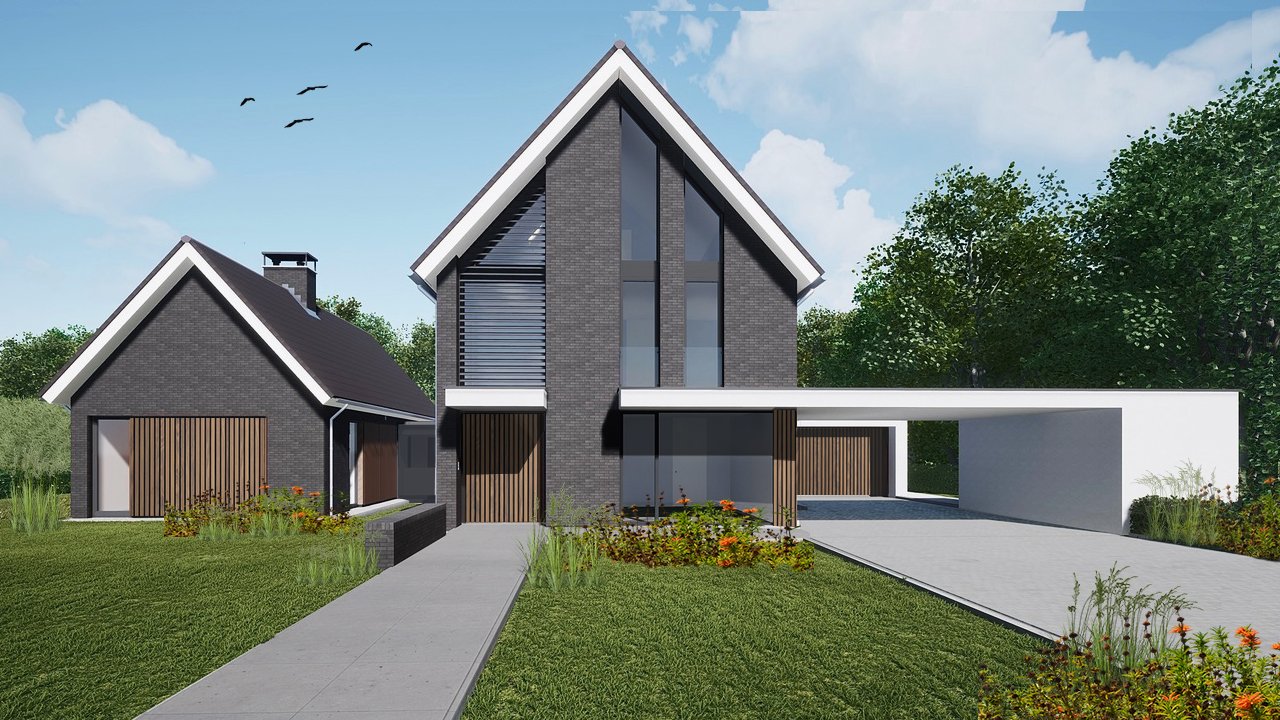 Een moderne villa, exclusief afgewerkt met stenen en hout. Prachtig gelegenheid in een natuurlijke omgeving.